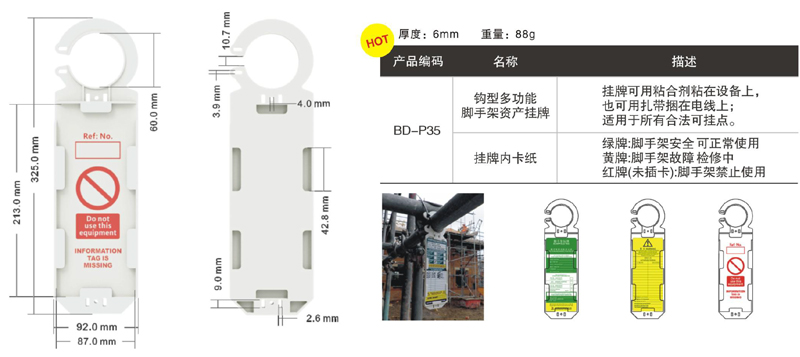 在产生之上状况的情况下,大家只需在周边挂上挂牌既可,并且挂牌带上很容易,而且适用各种各样工程项目脚手架。