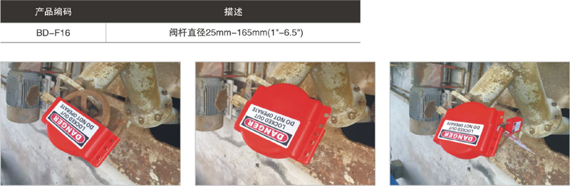 b.上锁范围可调节,适用于锁定手轮直径为25mm~165mm的闸阀
